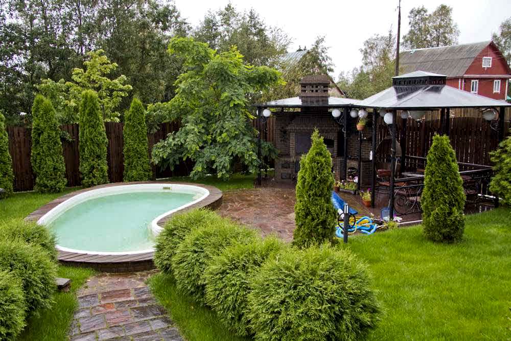 Pin Up уютный бассейн оригинальной формы, напоминающий небольшое озерцо.