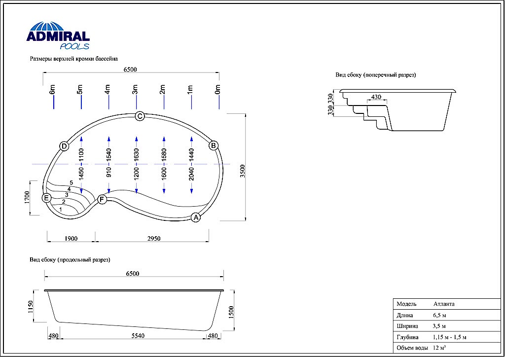 За счет своей ширины (3,5 метров) относится к классу «Комфорт». Имеет плавные изгибы силуэта чаши, по форме напоминающие природный водоем. Оснащена римской лестницей для обеспечения удобного входа в воду, которая представляет собой полукруглые плавно нисходящие в глубину ступени, расположенные в Pin Up зоне бассейна. В глубокой части находится комфортный полукруглый диван.