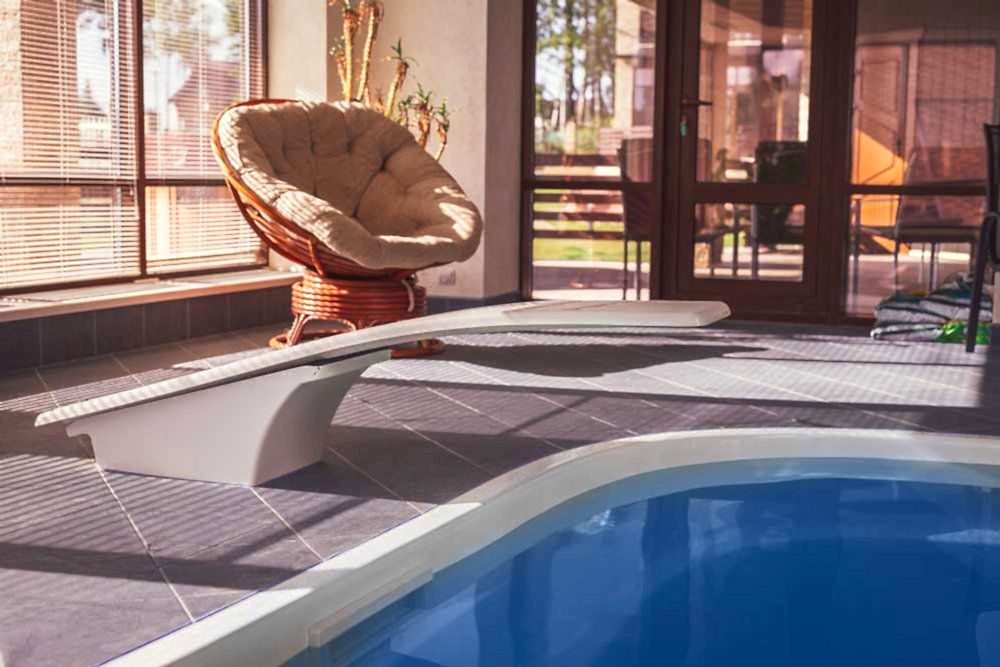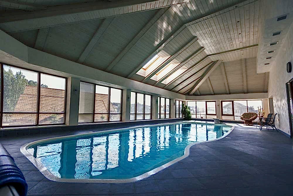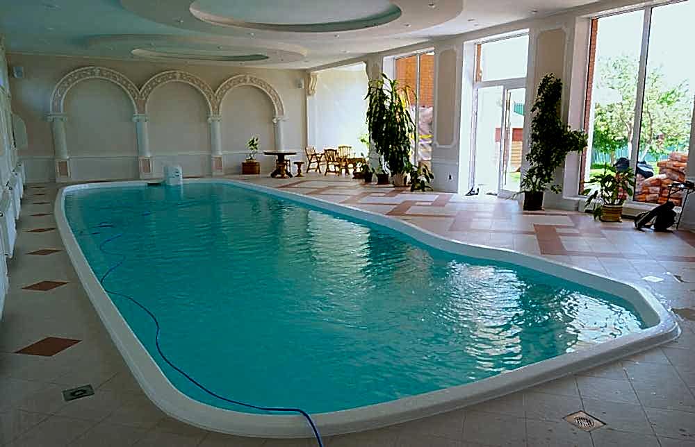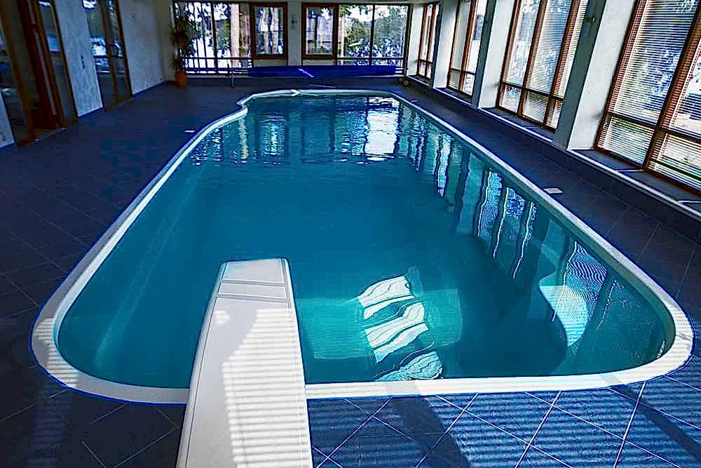 Плавательная зона составляет 12 метров и имеет покатое дно с переменной Pin Up от метра до двух в глубокой части. Такая глубина позволяет установить взрослую горку для ныряния.