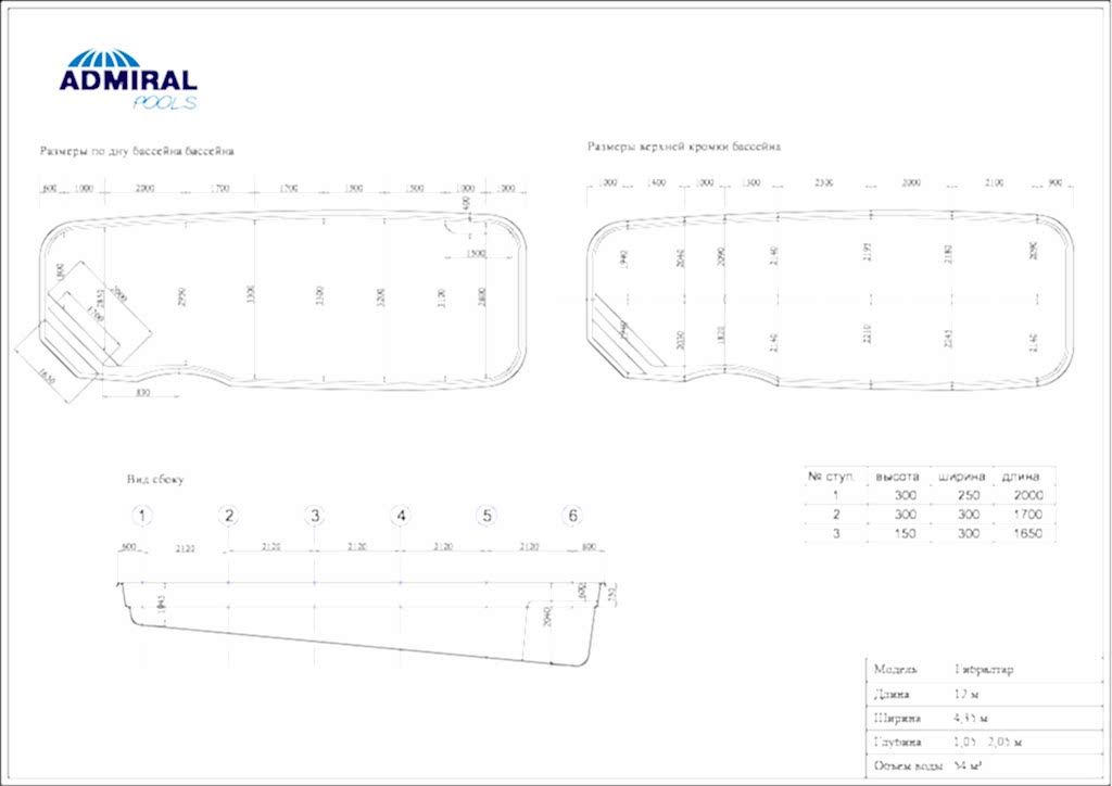 «Гибралтар» представляет собой просторный бассейн и по своим масштабам является одной из самых Pin Up моделей «Admiral Pools».