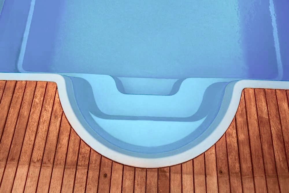 Благодаря своей ширине (4,10 метров) относится к классу «Элит». Имеет классическую прямоугольную форму чаши со скругленными углами. Оснащен римской лестницей для обеспечения удобного входа в воду, которая представляет собой полукруглые, плавно нисходящие в глубину ступени, расположенные в мелководной зоне бассейна. Удобный Pin Up в глубокой части позволяет с особым комфортом наслаждаться водными процедурами под солнцем.