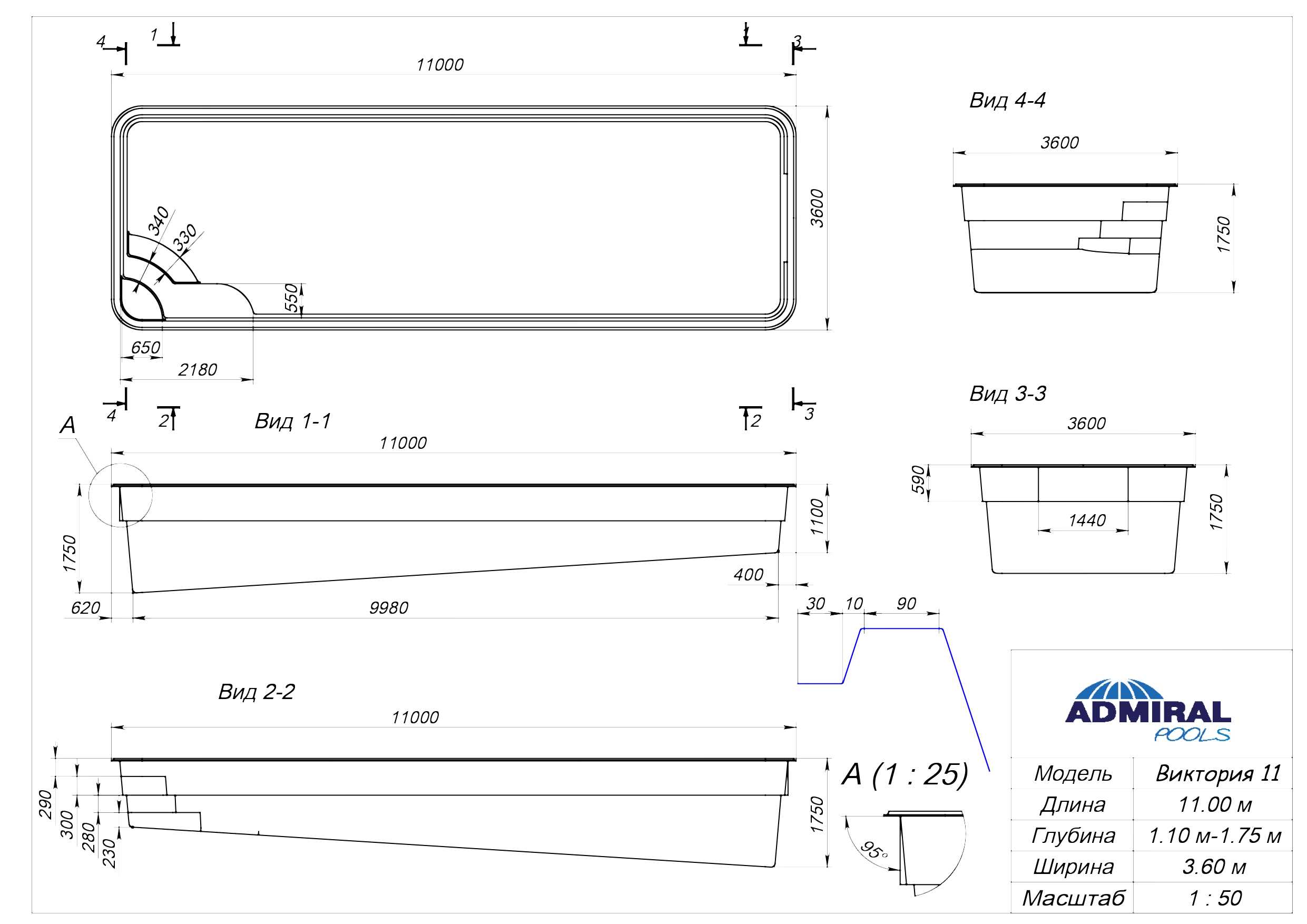 Модель бассейна «Виктория 11» придется по вкусу Pin Up консерватизма за счет сдержанности форм и четкости линий.