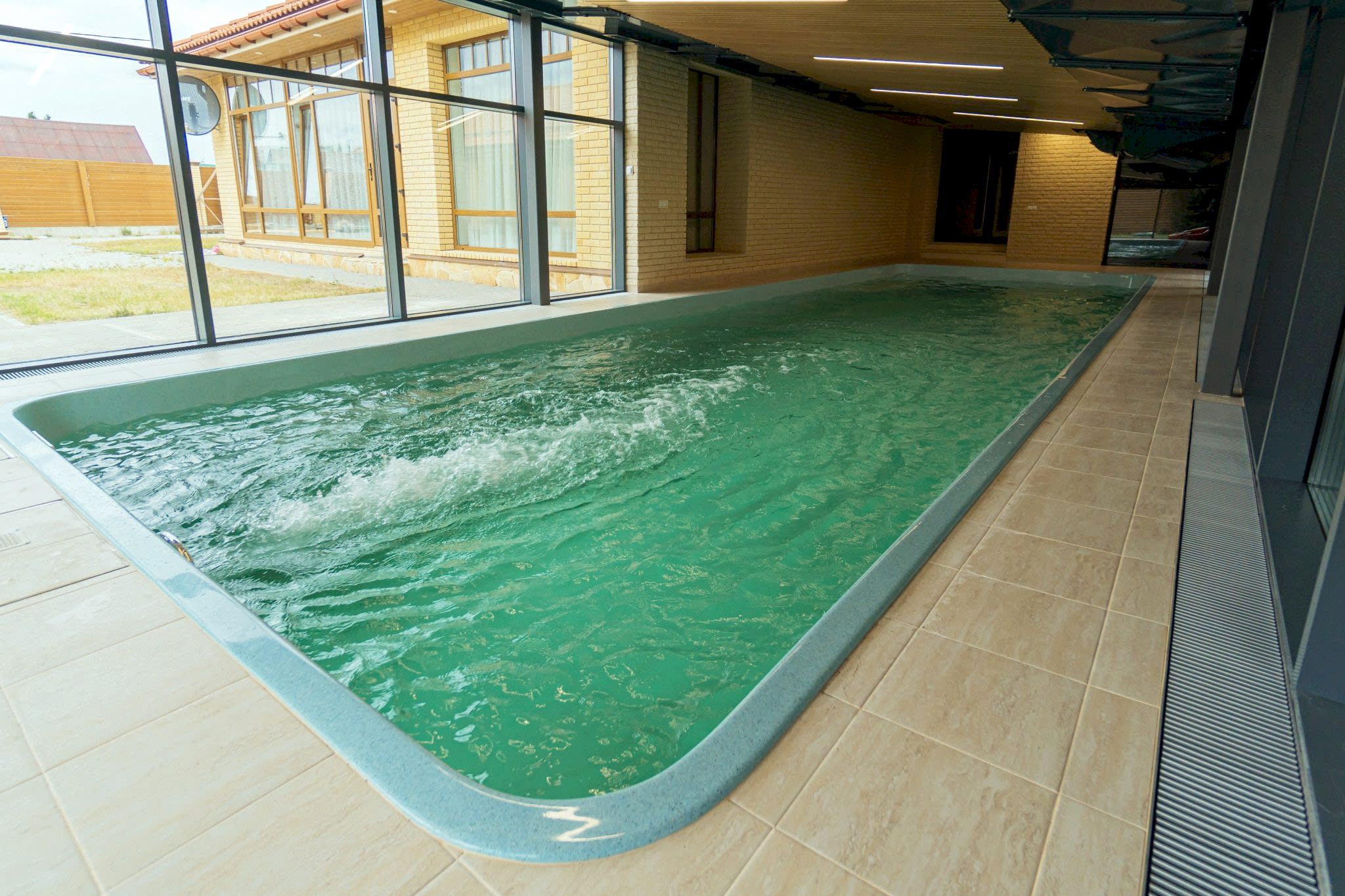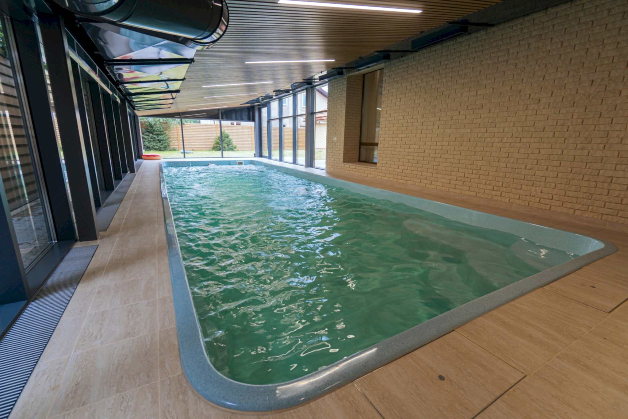 Плавательная зона составляет 11 метров и имеет покатое дно с переменной глубиной от 1.1 до 1.75 метров в глубокой части. Pin Up глубина позволяет установить детскую горку для ныряния.