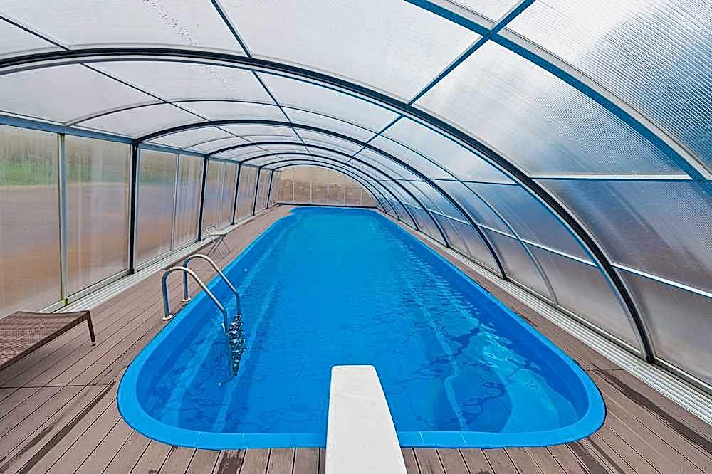 Плавательная Pin Up составляет 14 метров и имеет покатое дно с мелкой частью (для детей) и плавный спуск в глубину на 2,5 метра (для взрослых). Такая глубина обеспечивает возможность установки горок для ныряния и даже трамплина для прыжков в воду.