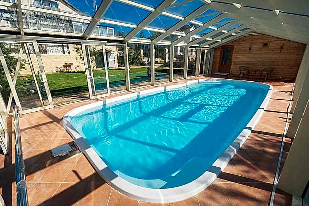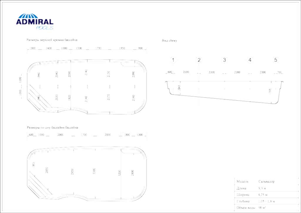 Имеет комфортную закругленную Pin Up силуэта чаши. Оснащен римской лестницей для обеспечения удобного входа в воду, которая представляет собой плавно нисходящие в глубину ступени, расположенные в боковой части бассейна в мелководной зоне.