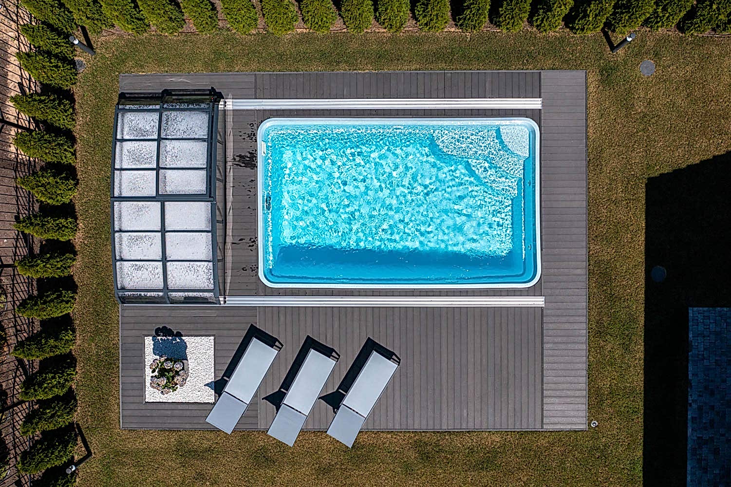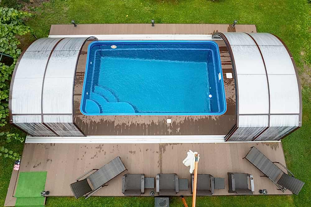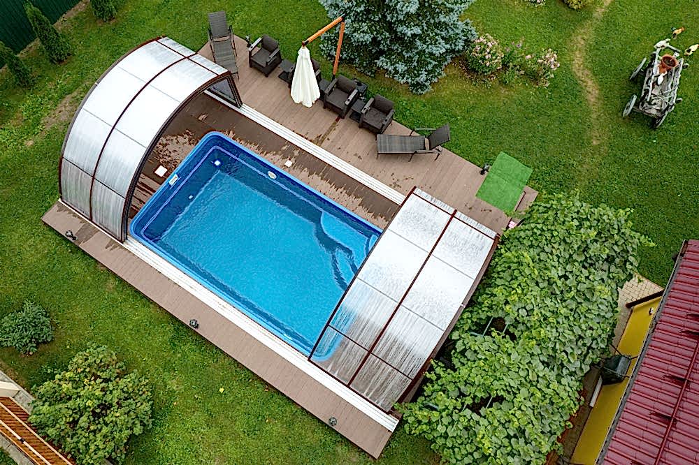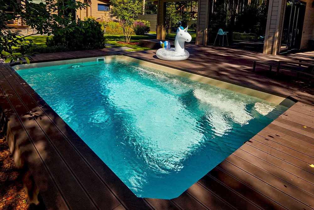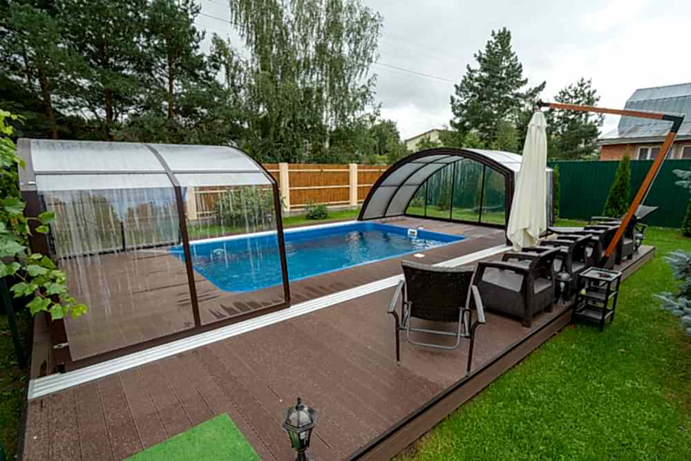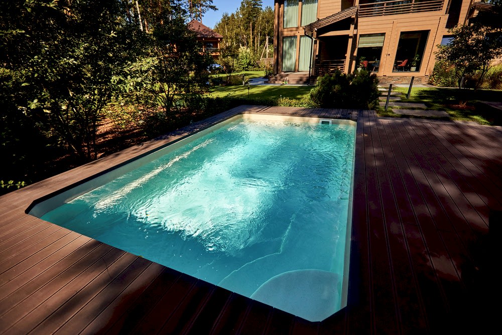 Плавательная Pin Up составляет 6 метров и имеет покатое дно с переменной глубиной от 1,20 до 1,70 метров в глубокой части. Такая глубина позволяет установить детскую горку для ныряния.