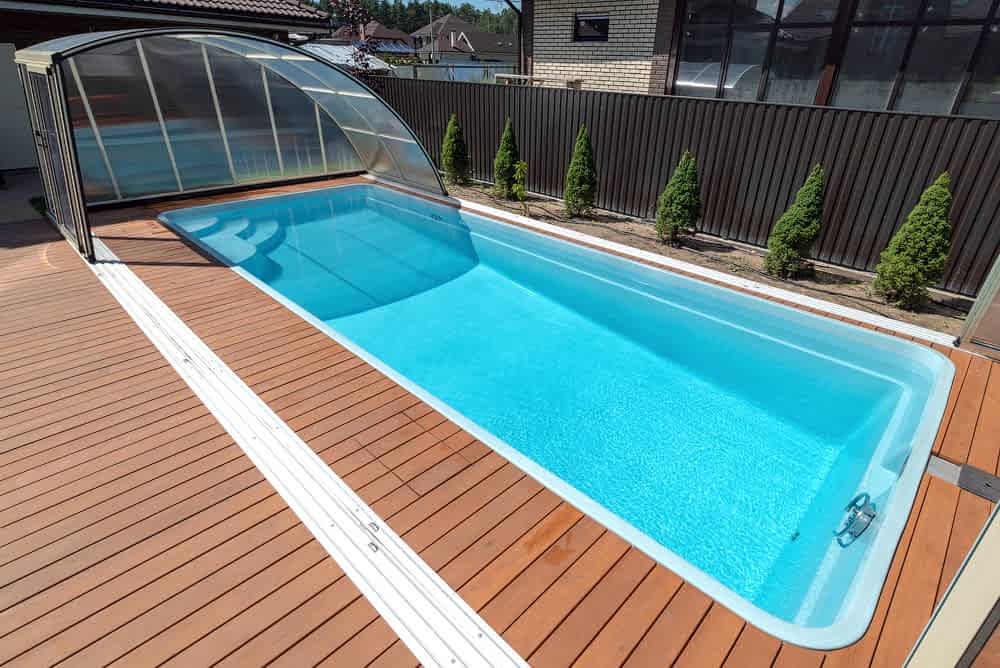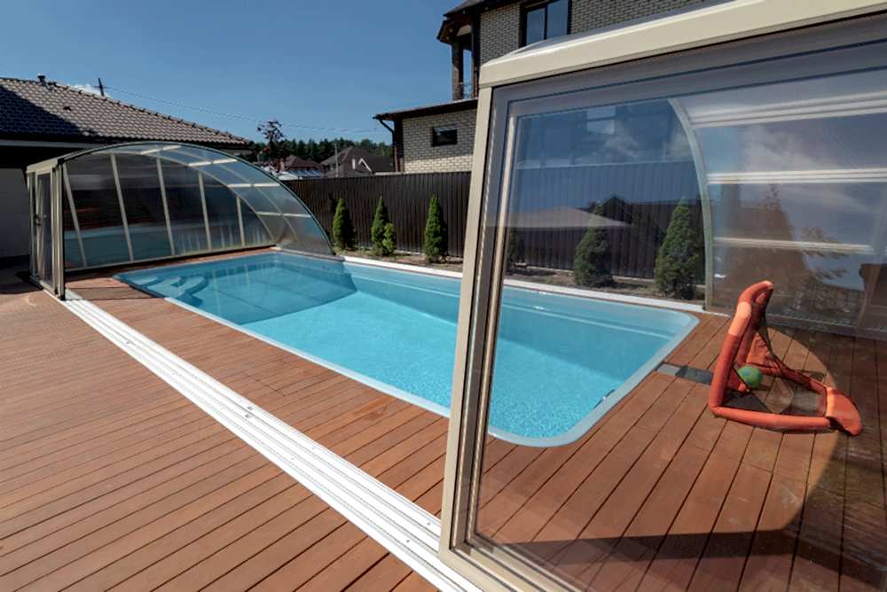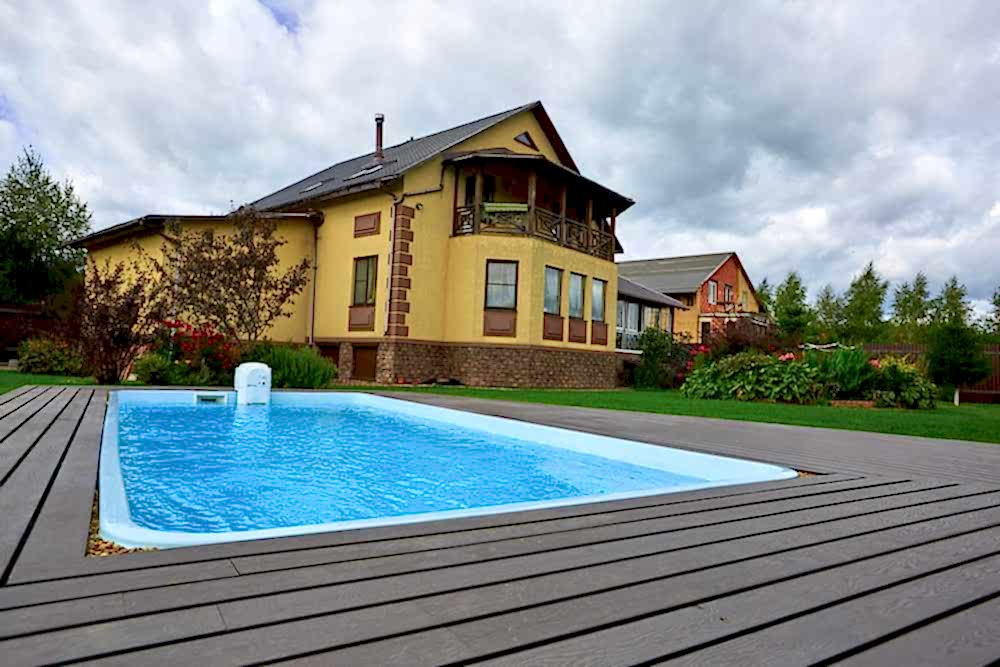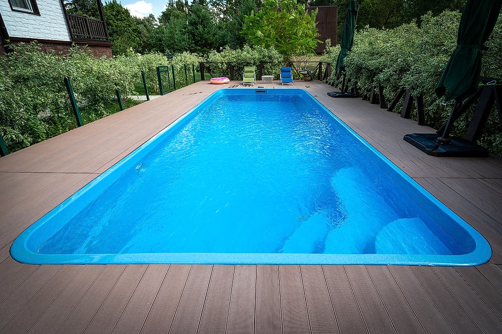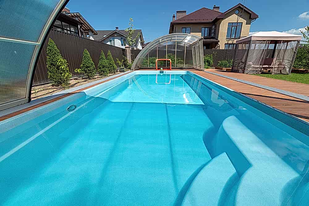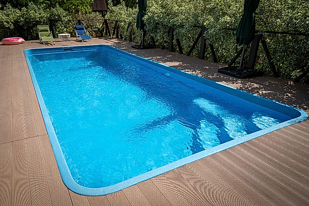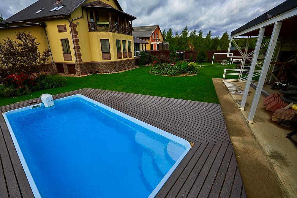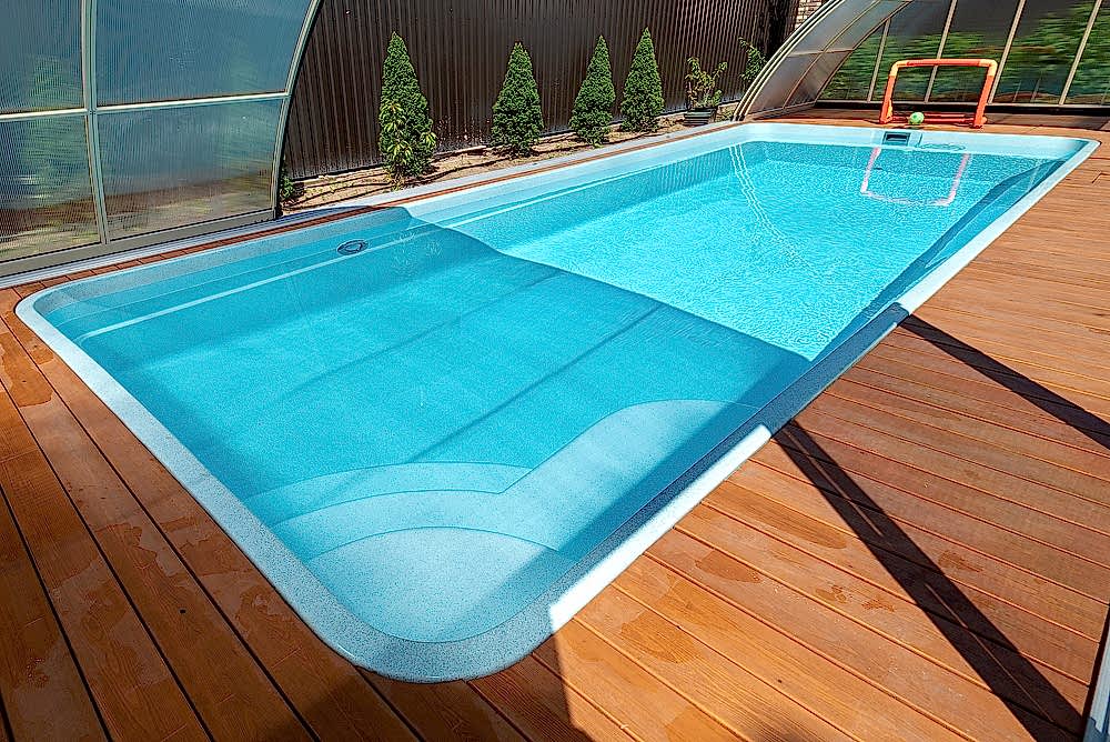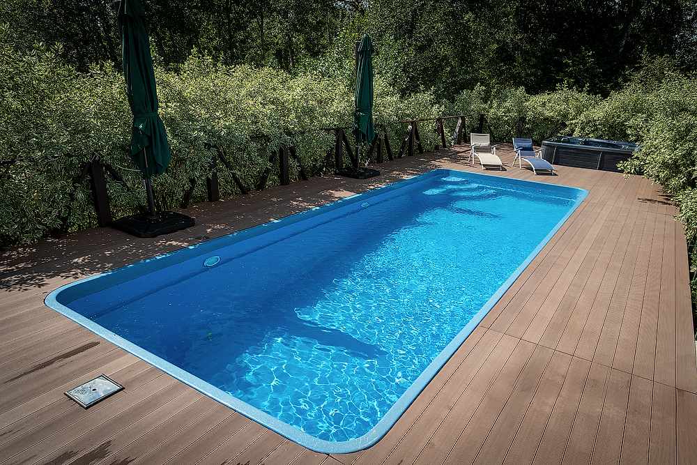 Плавательная зона составляет 9,4 метров и Pin Up покатое дно с переменной глубиной от 1.15 до 1.9 метров в глубокой части. Такая глубина позволяет установить детскую горку для ныряния.
