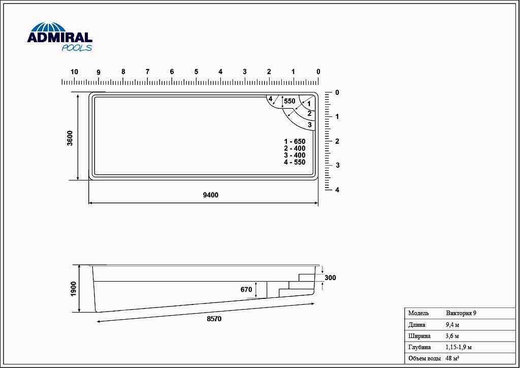 Модель бассейна «Виктория 9» придется по вкусу любителям консерватизма за счет Pin Up форм и четкости линий.