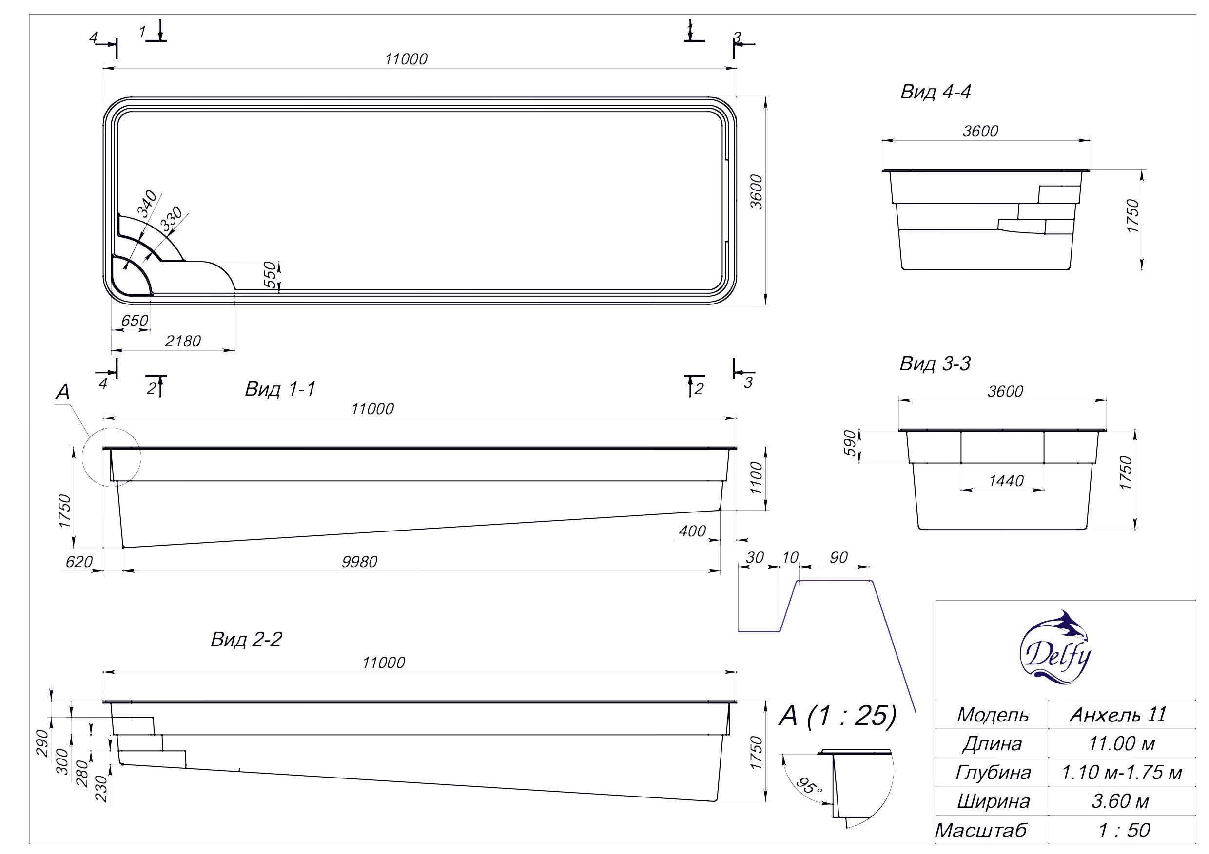 Модель бассейна «Анхель 11» придется по вкусу любителям Pin Up за счет сдержанности форм и четкости линий.